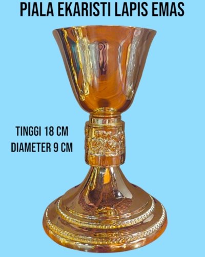 UKURAN PIALA EKARISTI: TINGGI 18 CM DIAMETER 9 CM KEUNGGULAN : 1️⃣Terbuat dari kuningan lapis emas 24 karat 2️⃣ Produk terbaik dan paling laris.